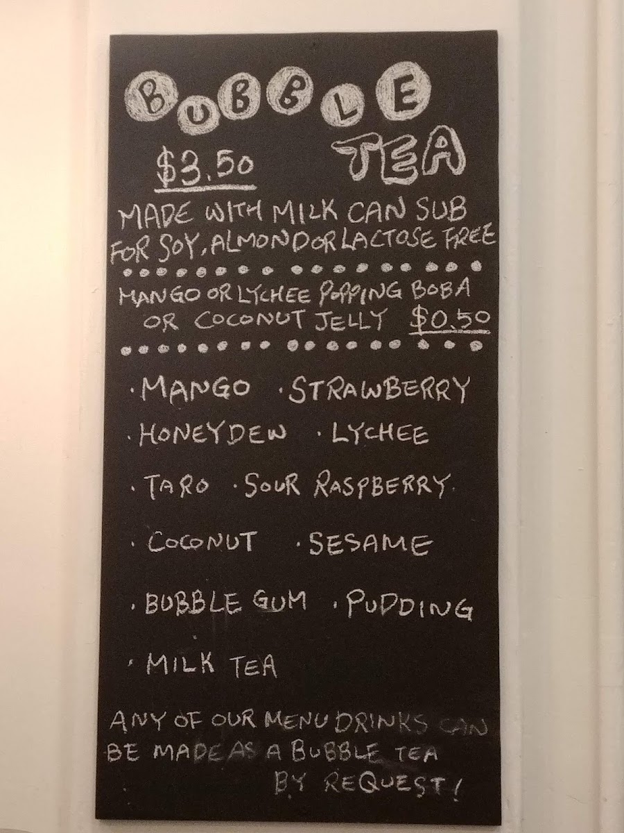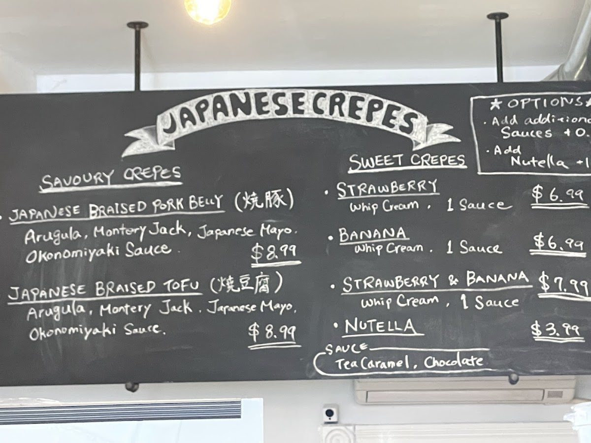 Overall, the menu provides a combination of tea drinks, coffee beverages, and light food items focused on crepes, supporting a range of preferences from simple drinks to more substantial light meals.